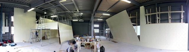 左にはちょっとトップロープ、右の製作中の壁は115度で上部が90度ぐらい