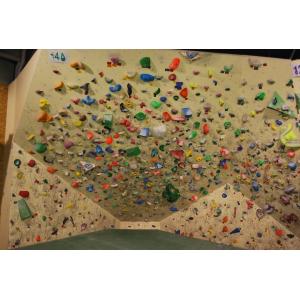 新しい課題やホールドも増えてさらに面白くなった140°壁、是非登りに来てください☺