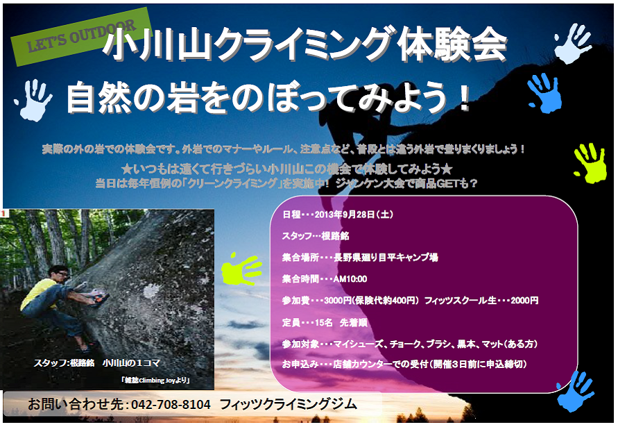 [送付先住所・メールアドレス] フィッツクライミングジム 担当:根路銘(ねろめ)宛 〒195-0062 東京都町田市大蔵町208-1 電話番号 042-708-8104/ メールアドレス fits@e7a.jp